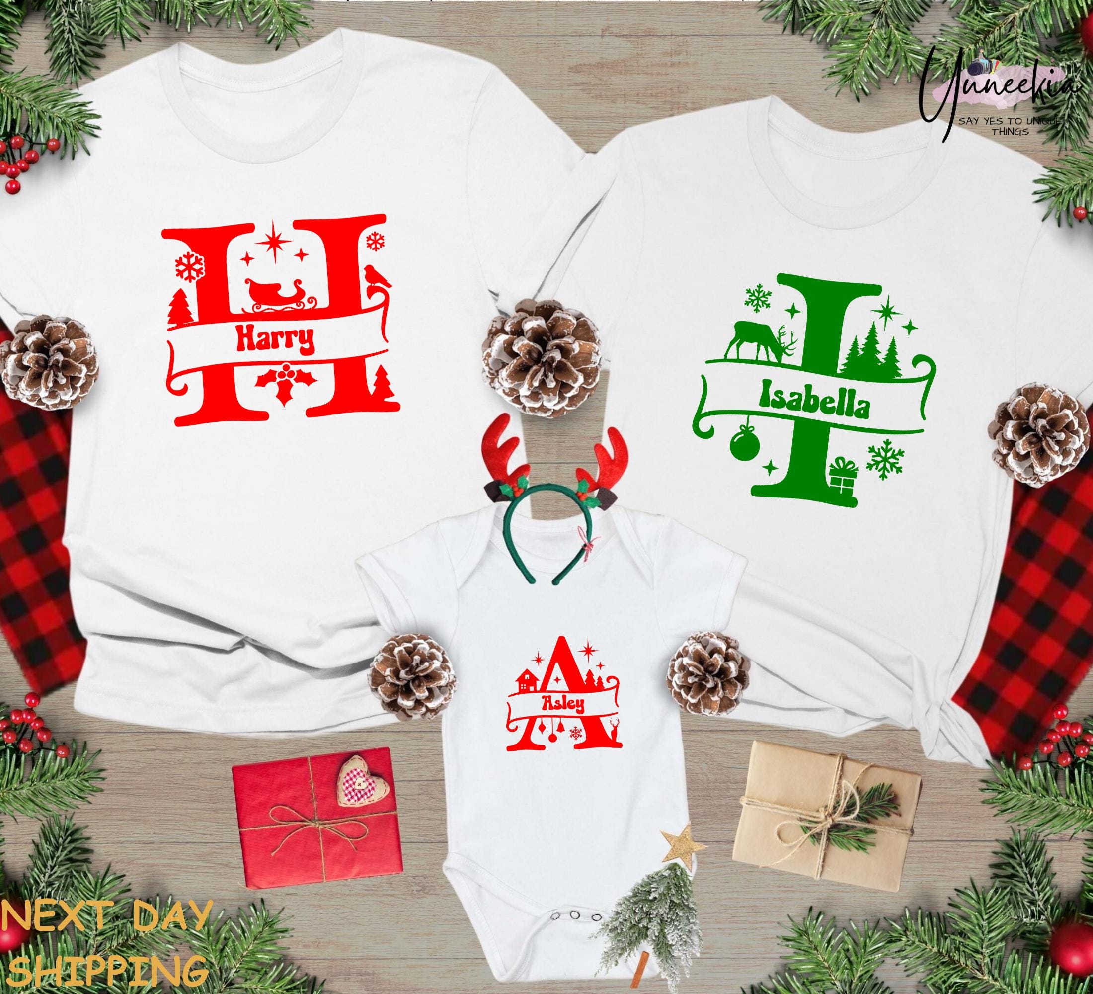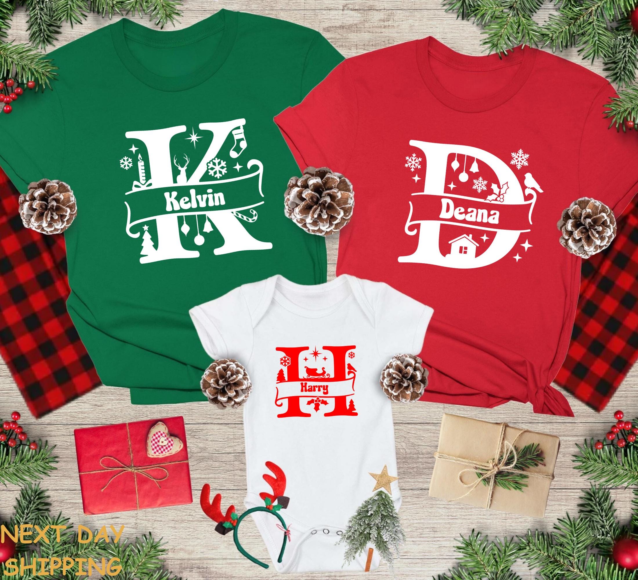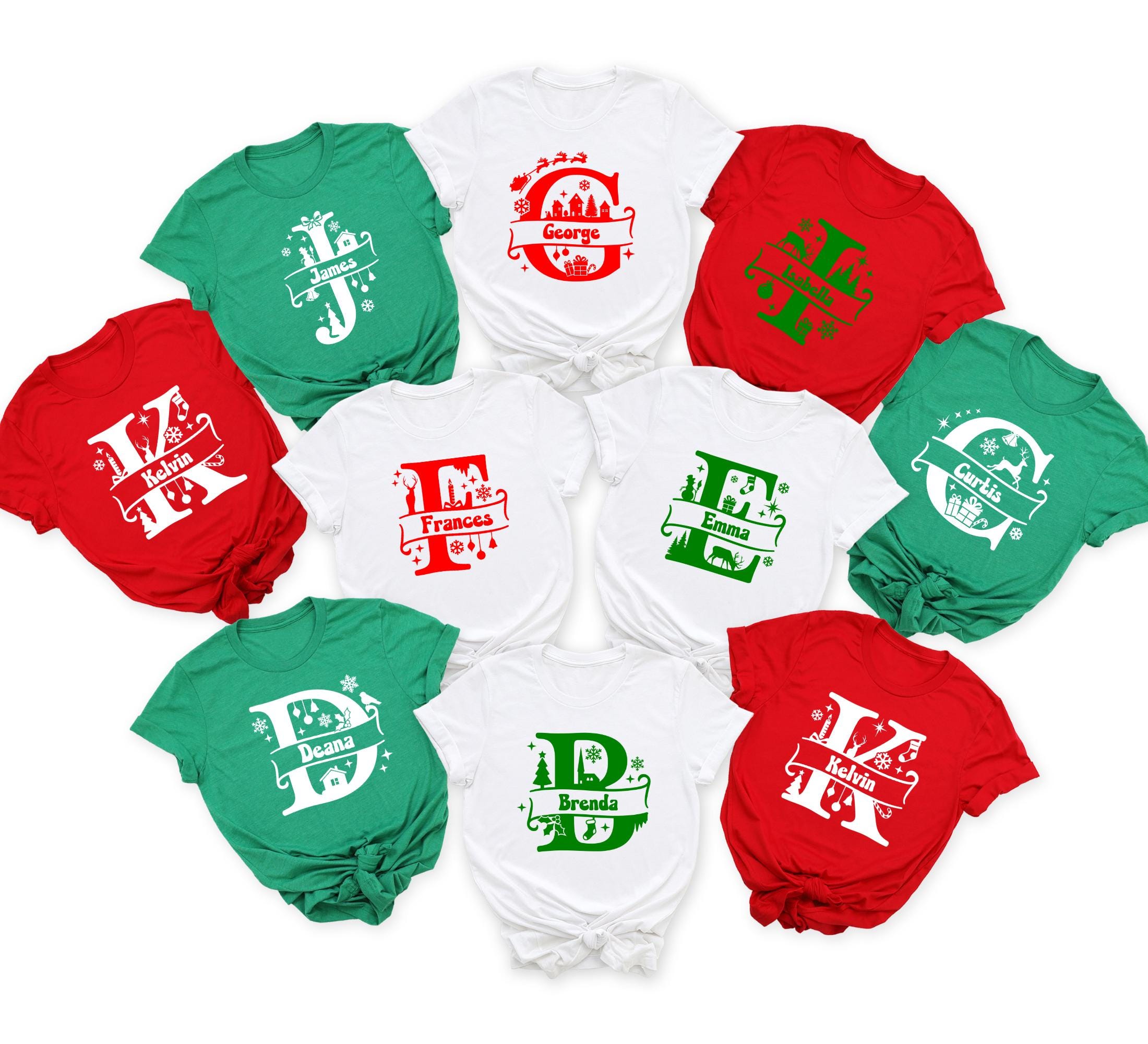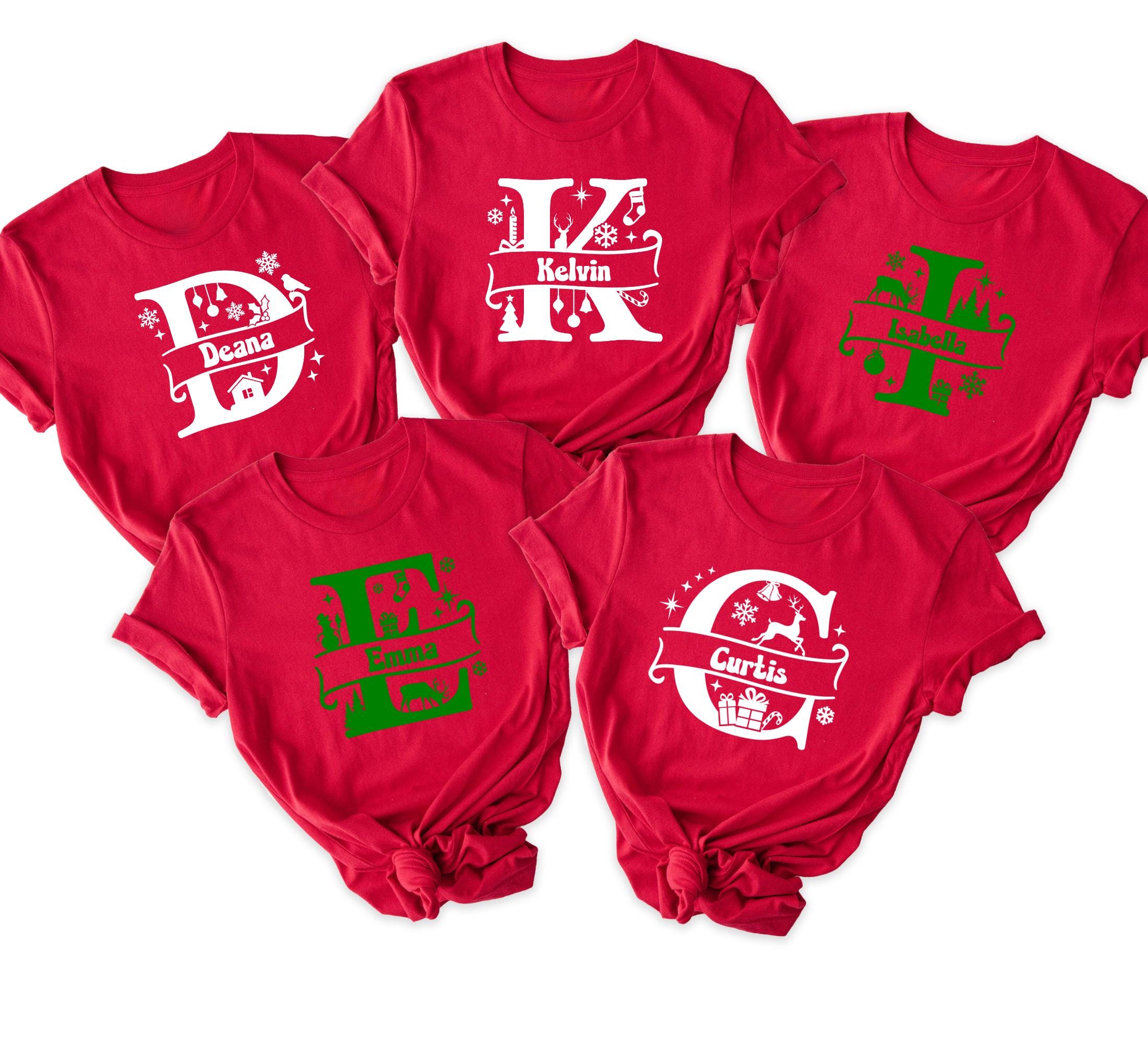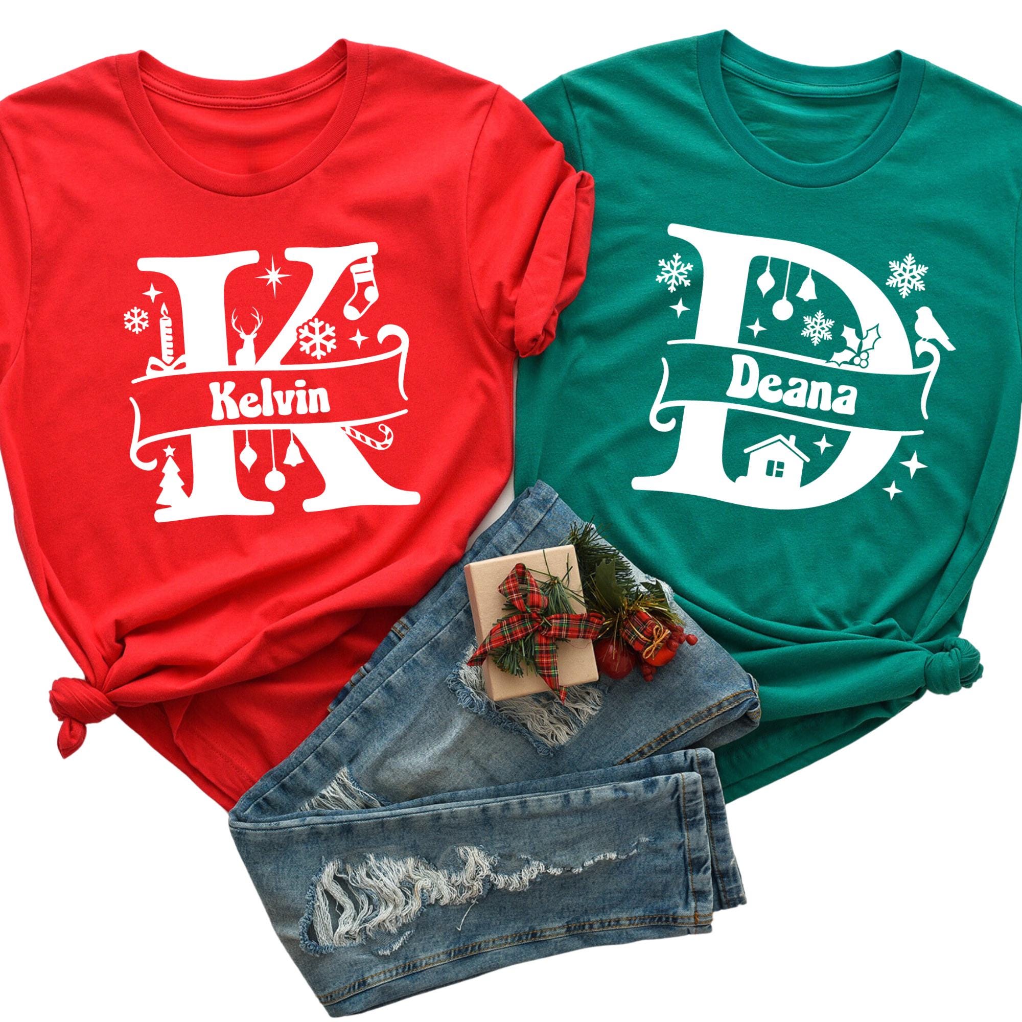 Custom Name Monogram Family Shirts Personalized Christmas Pajama Reunion Tee