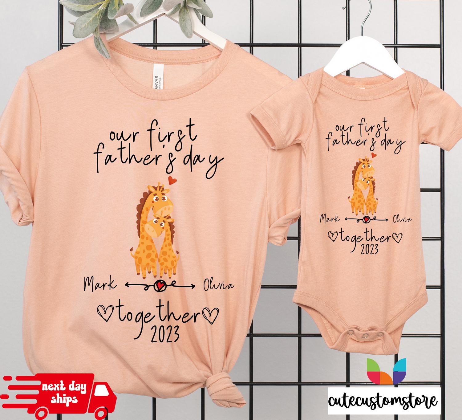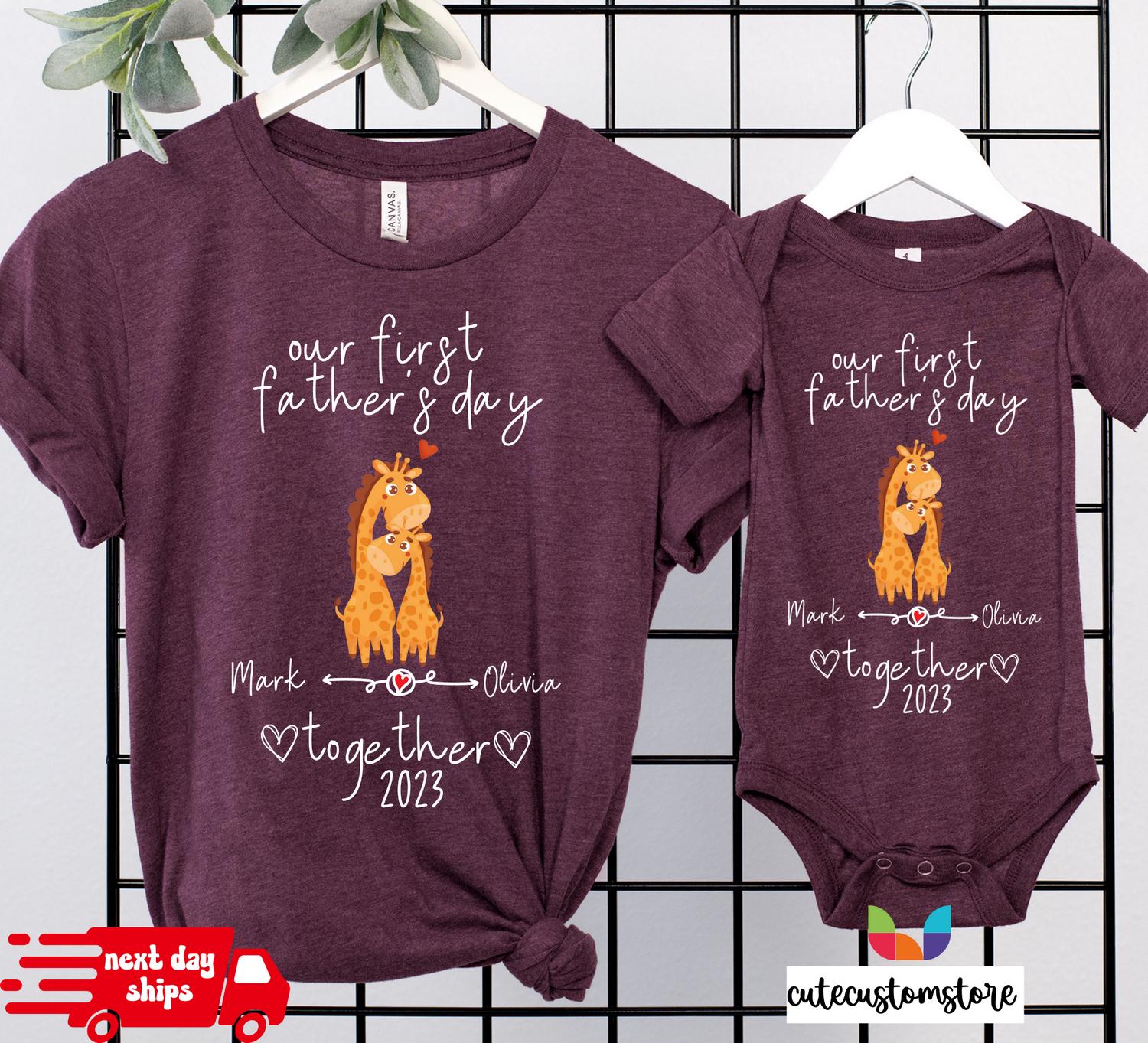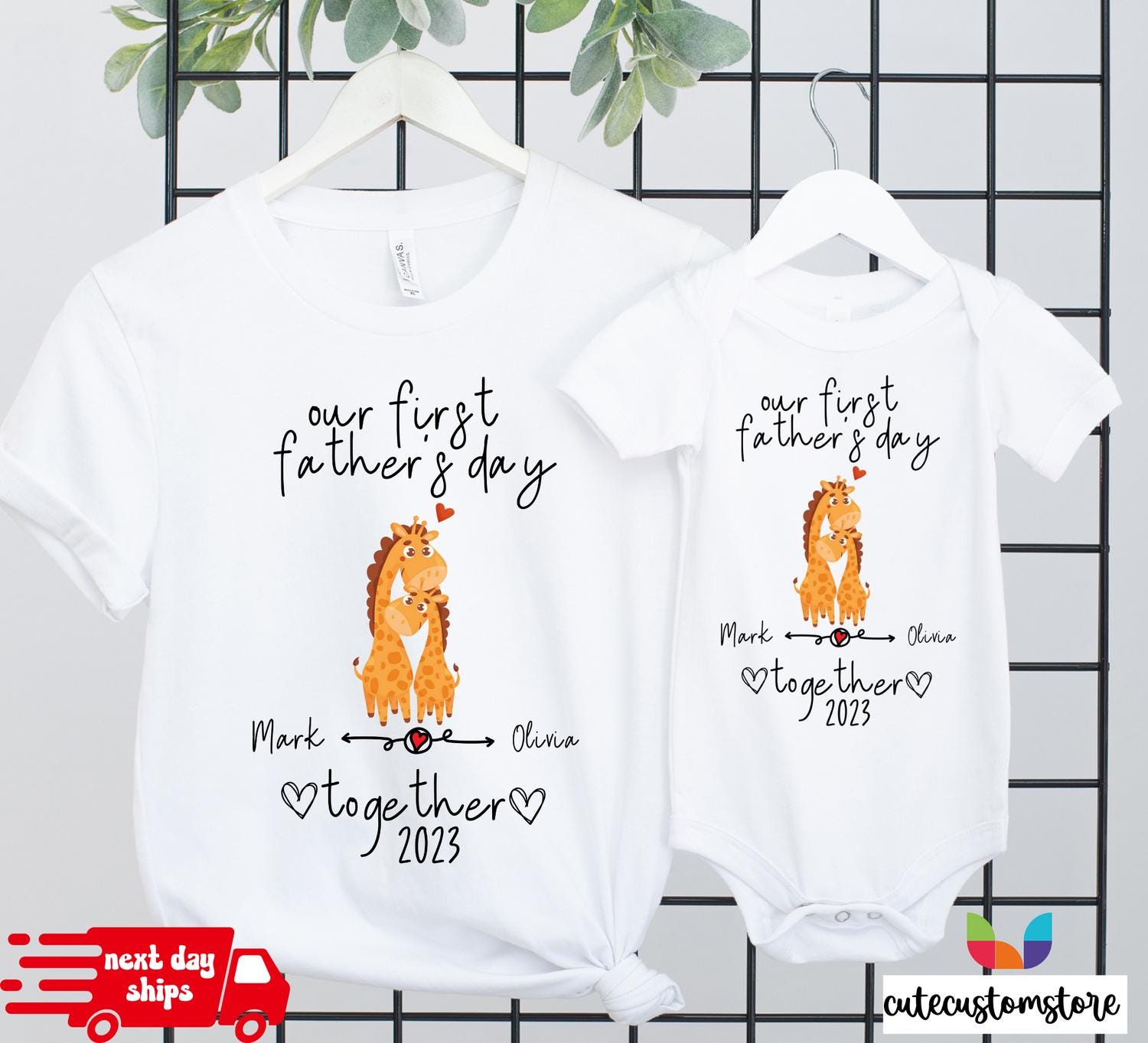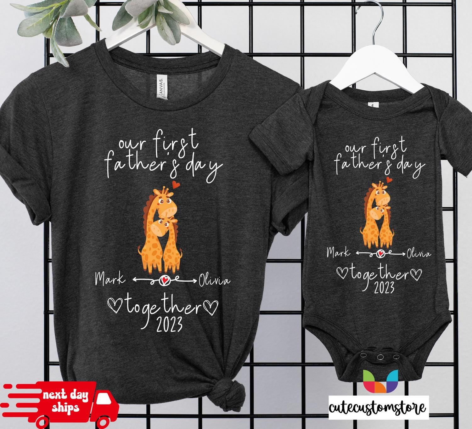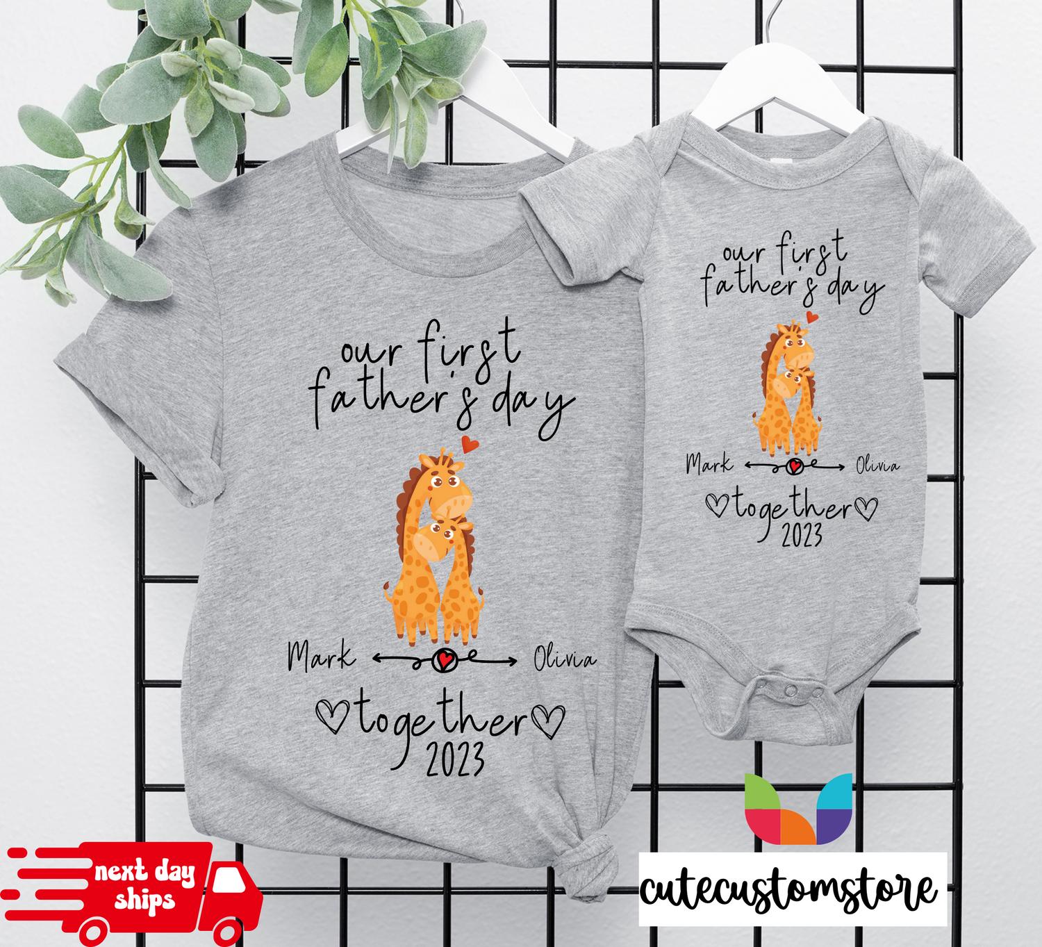 Our First Father's Day Together Shirt,Personalized Matching Set,Dad & Baby Giraffe Shirt,Father's Day Baby Gift,Gift for her
