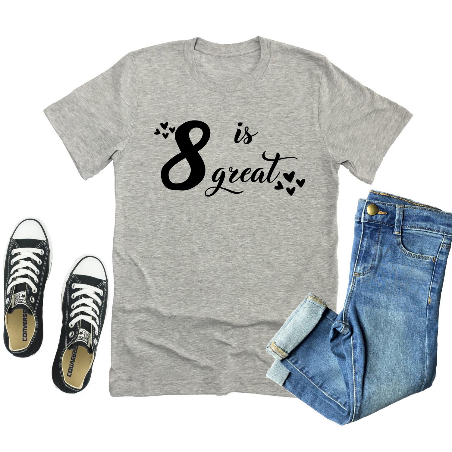 Eight is Great Shirt ,Girl's Birthday 8th Age T-Shirt, Bday 8 years old Outfit, Birthday Gift