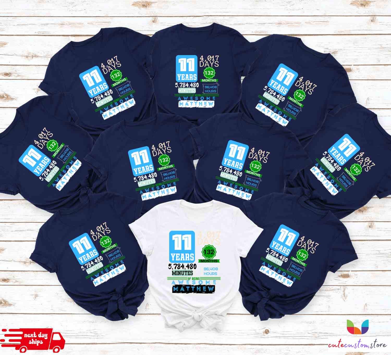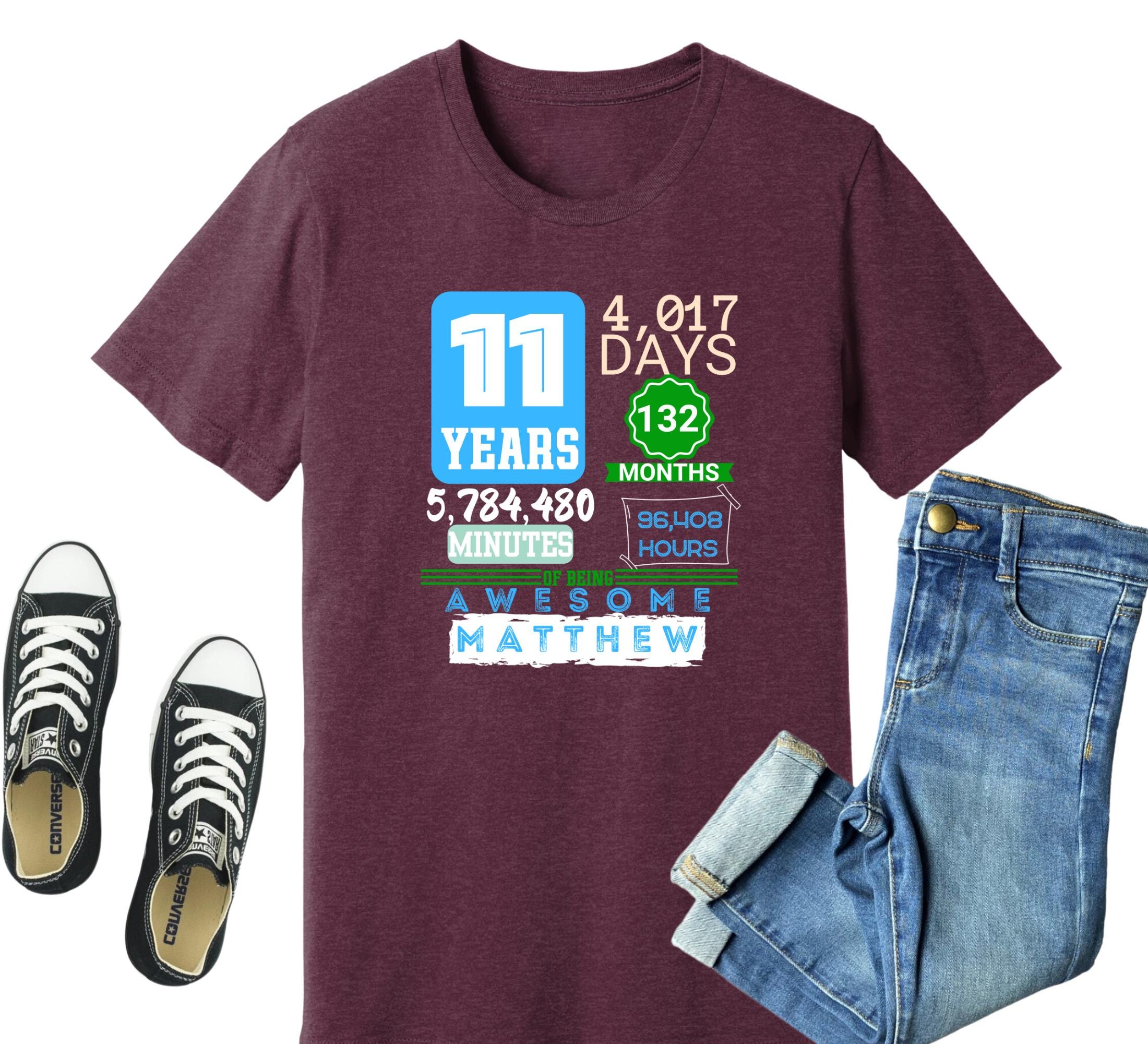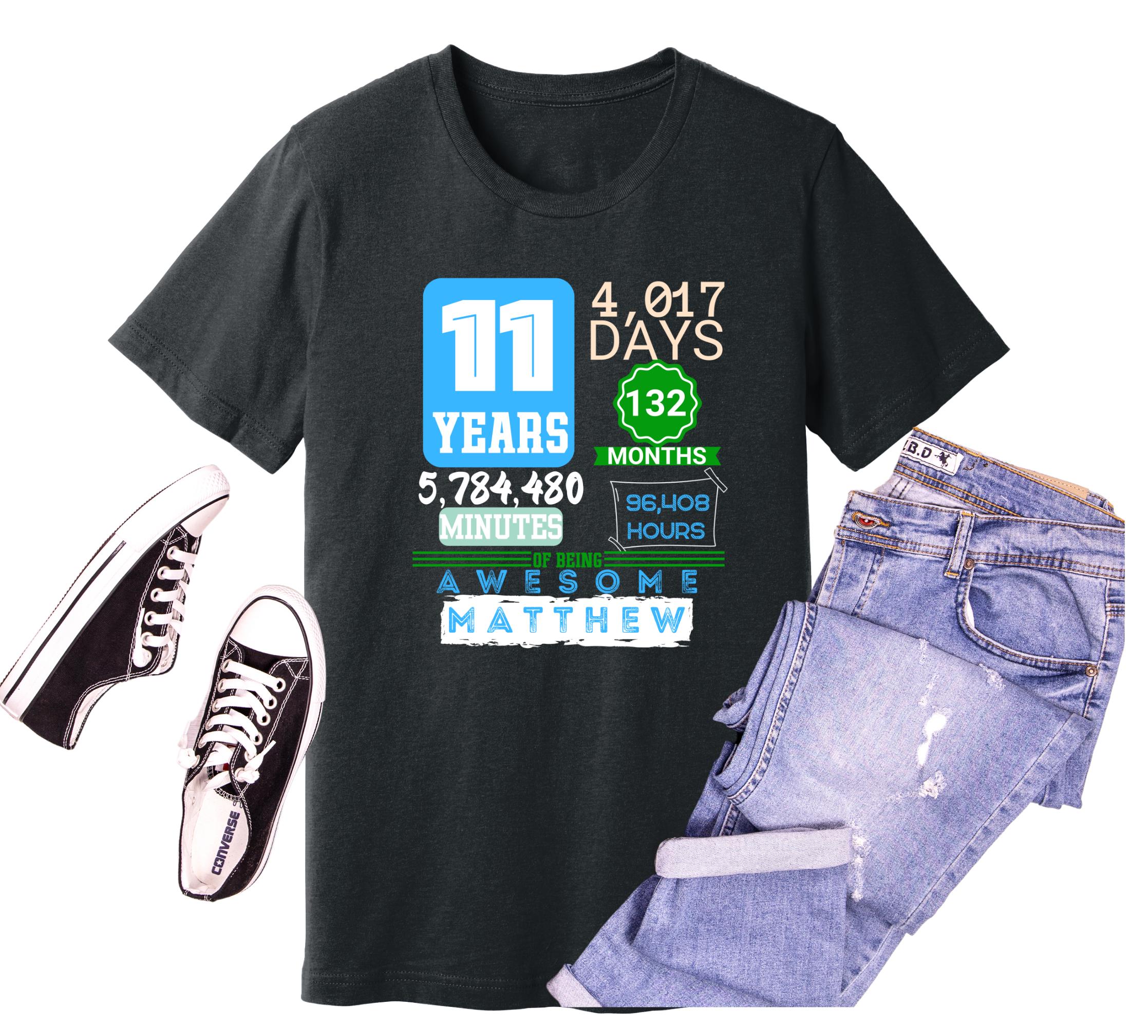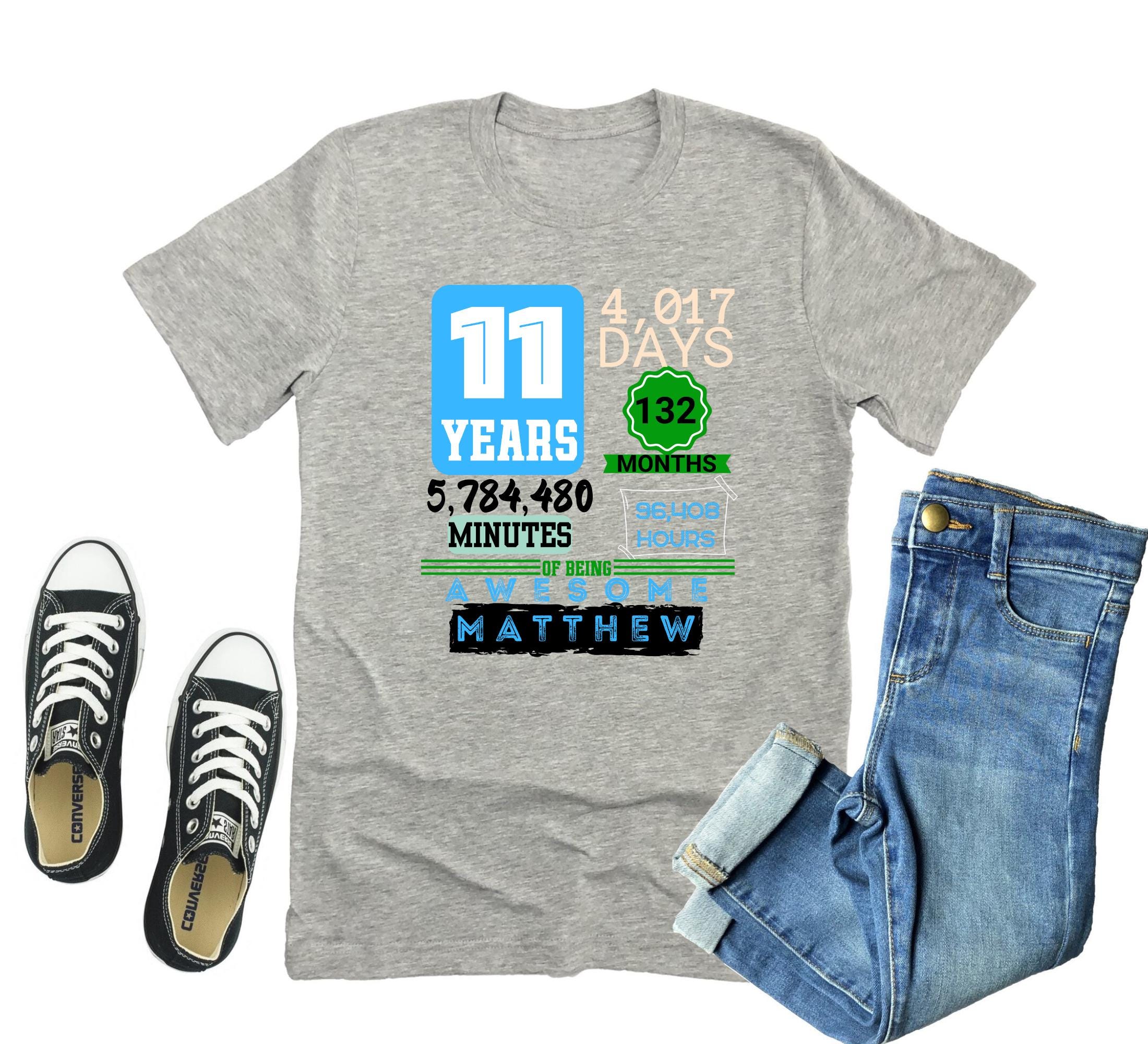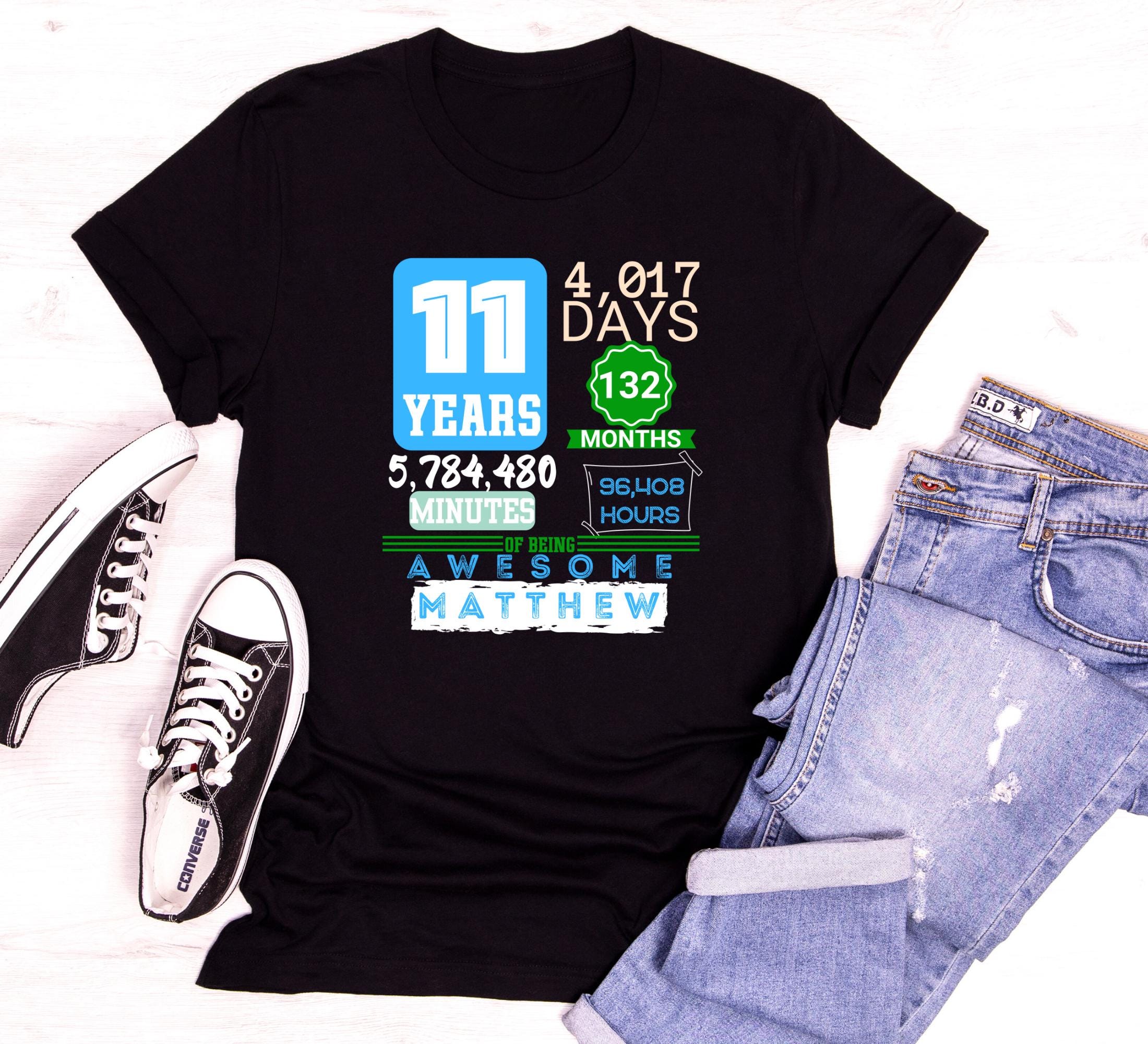 11 Years Months Days Minutes Shirt,11th Birthday T-Shirt, Personalized Birthday Shirt Gift, Being Awesome Shirt