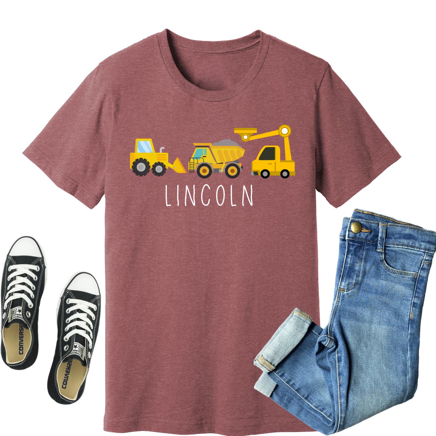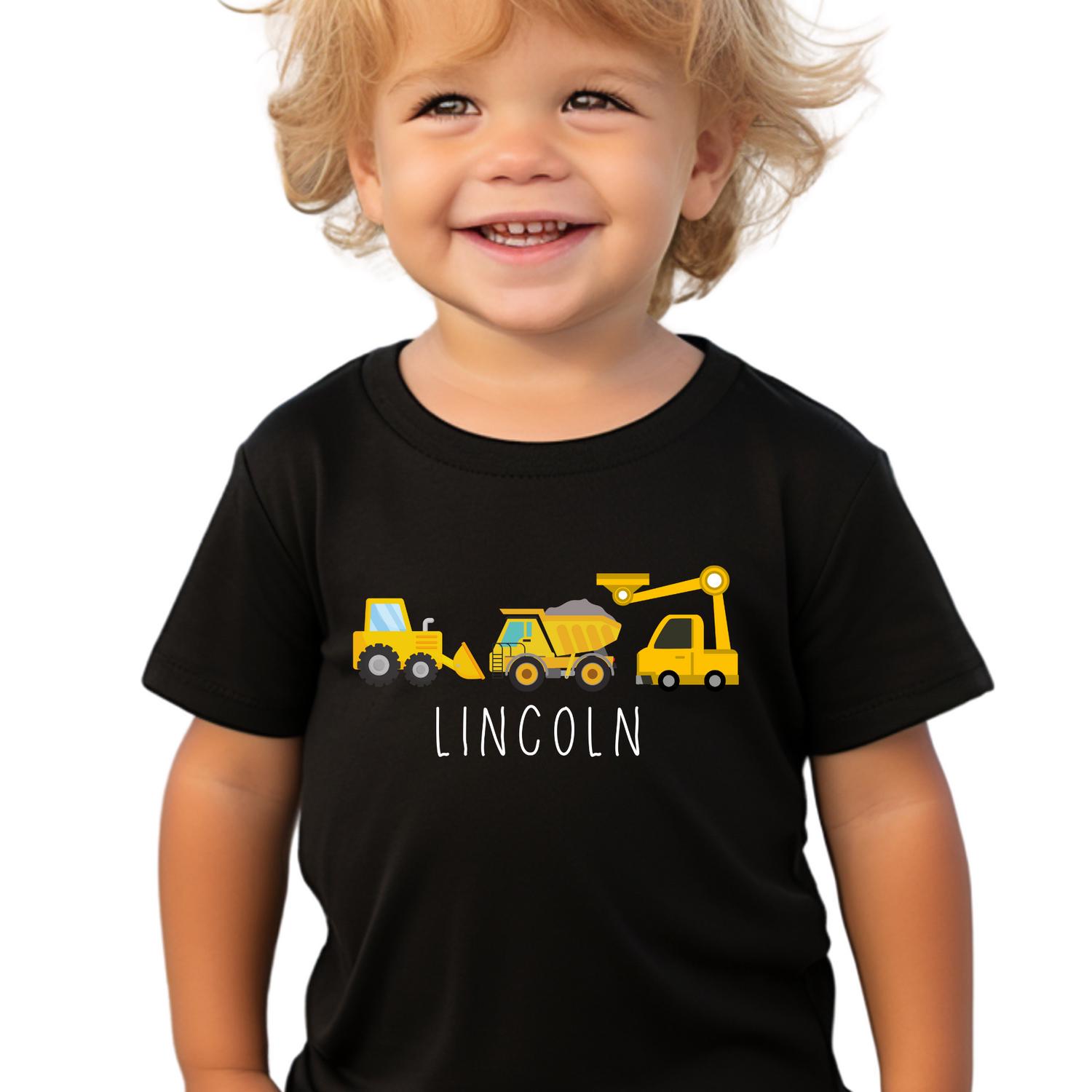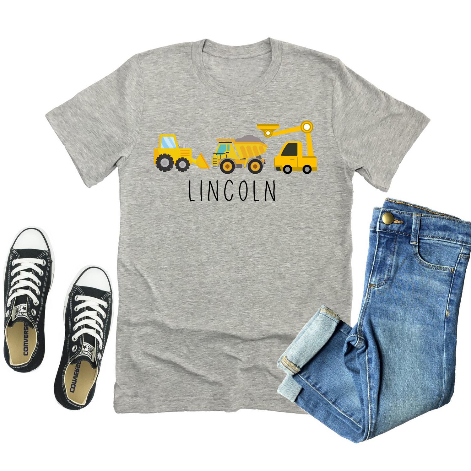 Personalized Construction Trucks Birthday Shirt: Custom Kids Tee