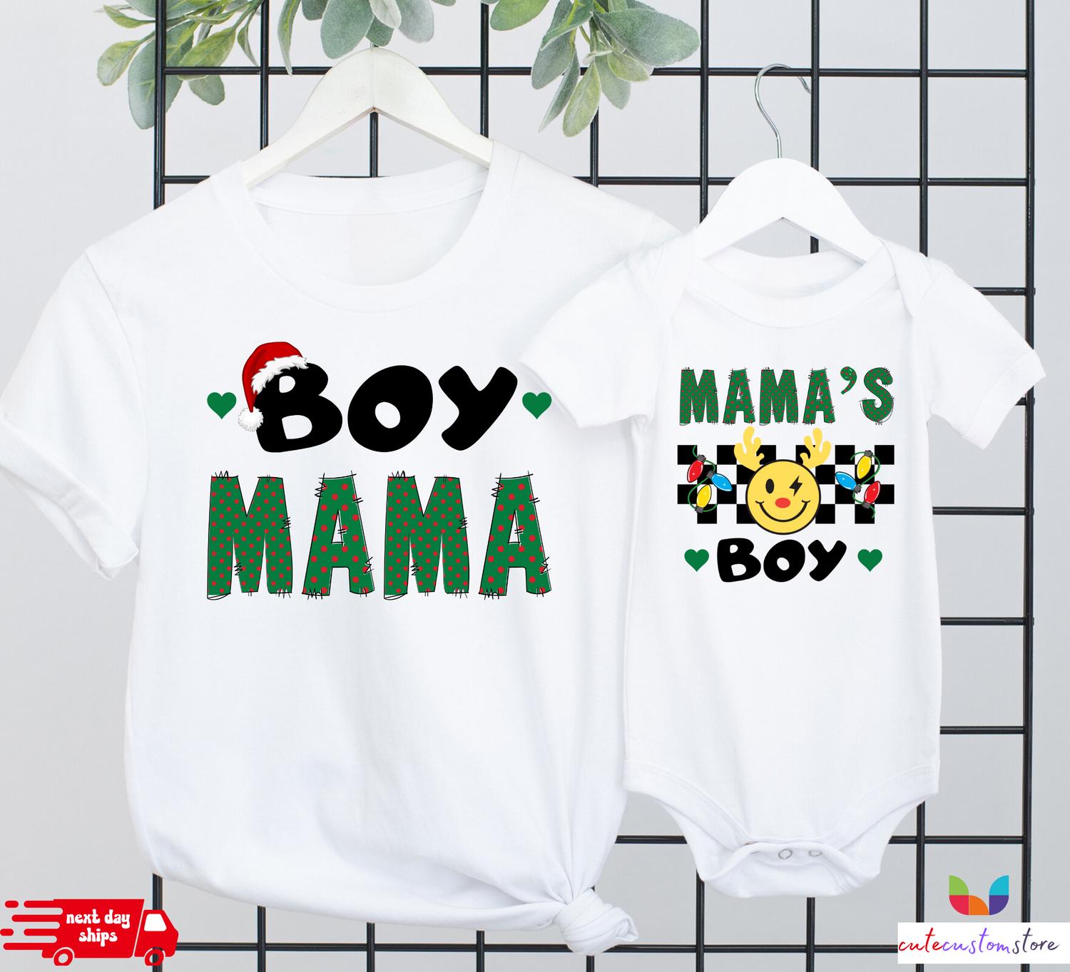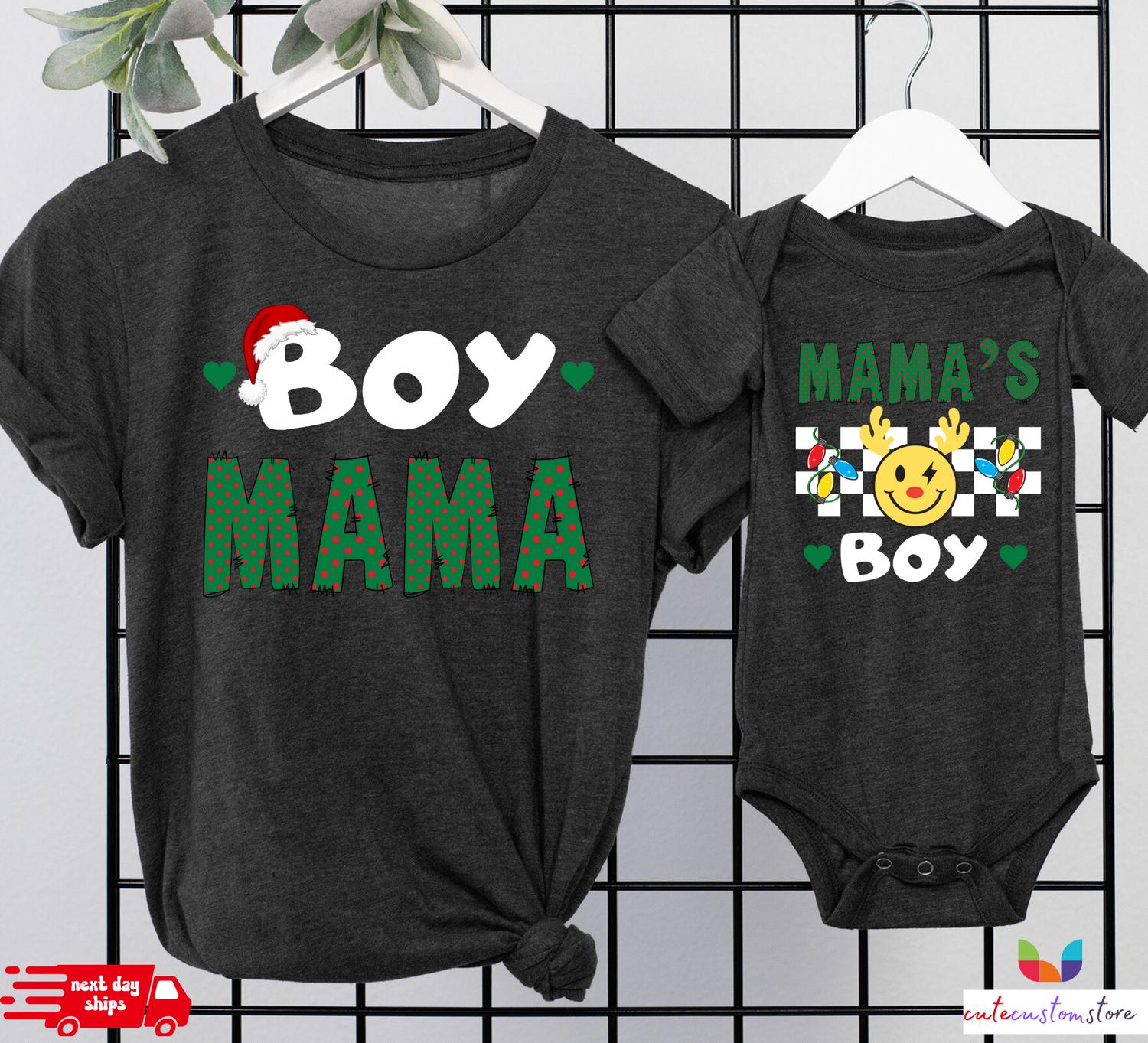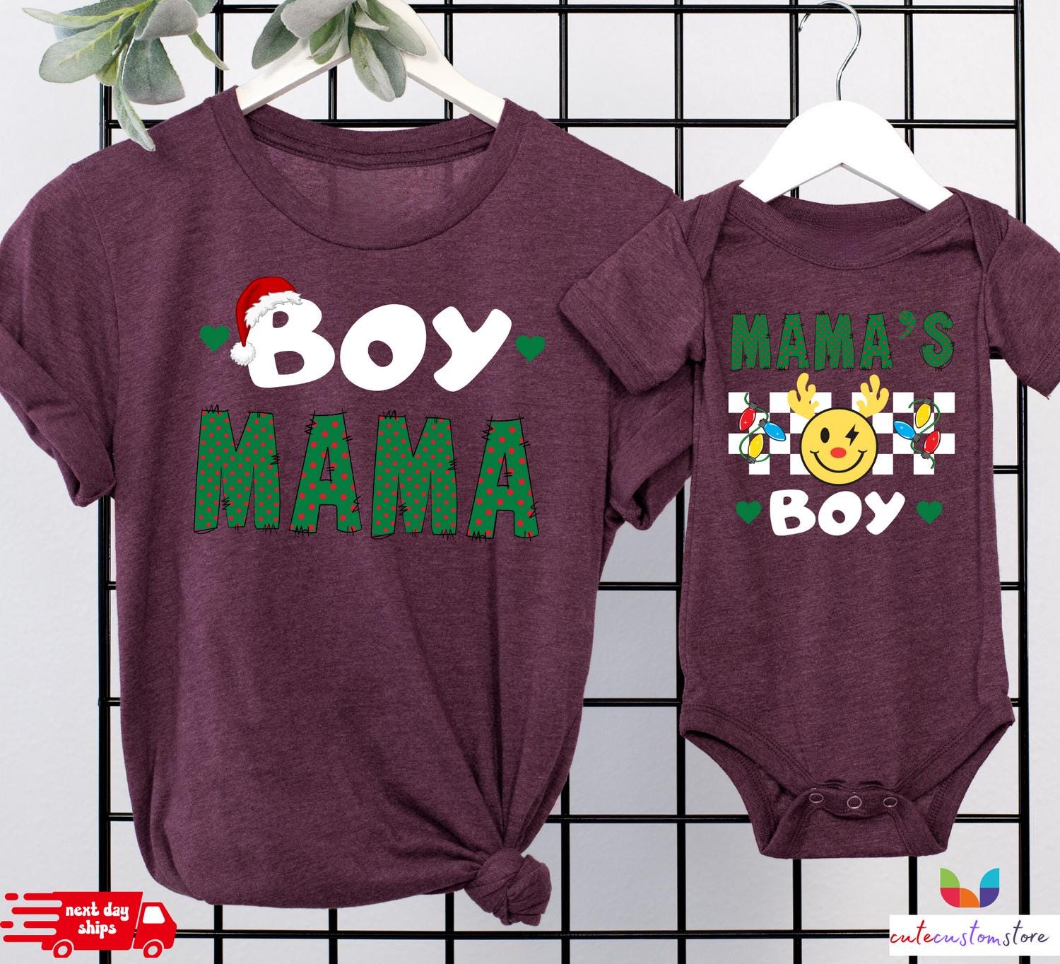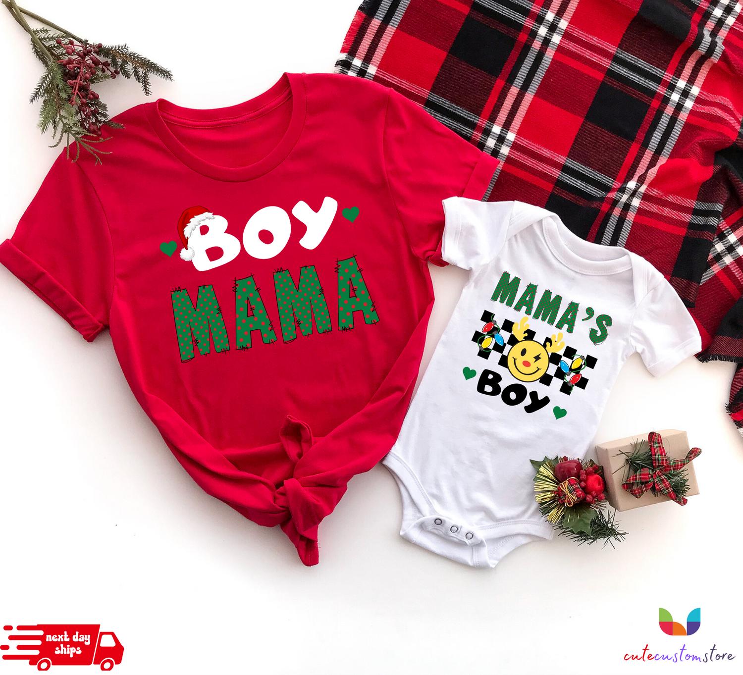 Boy Mama and Mama's Boy Christmas Matching Shirts, Son and Mother Cute Holiday T-Shirts