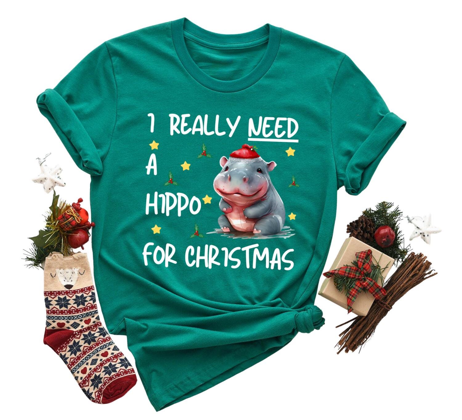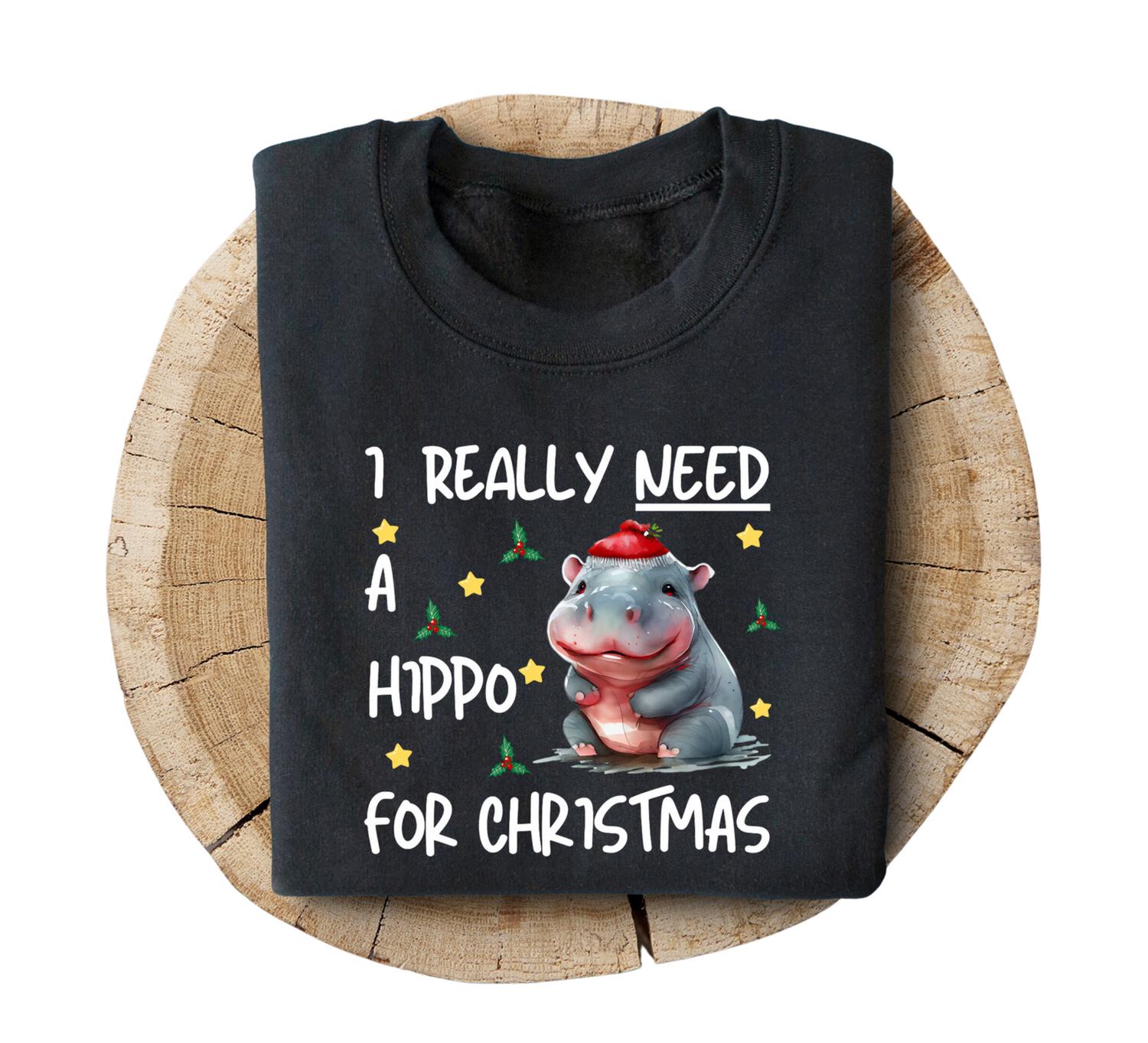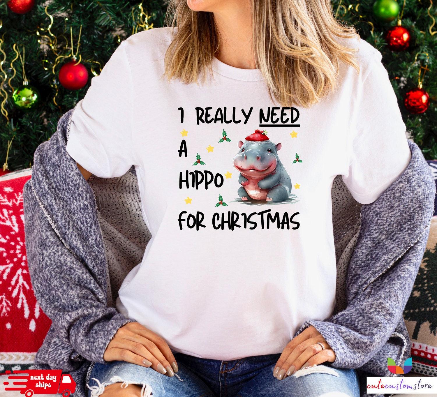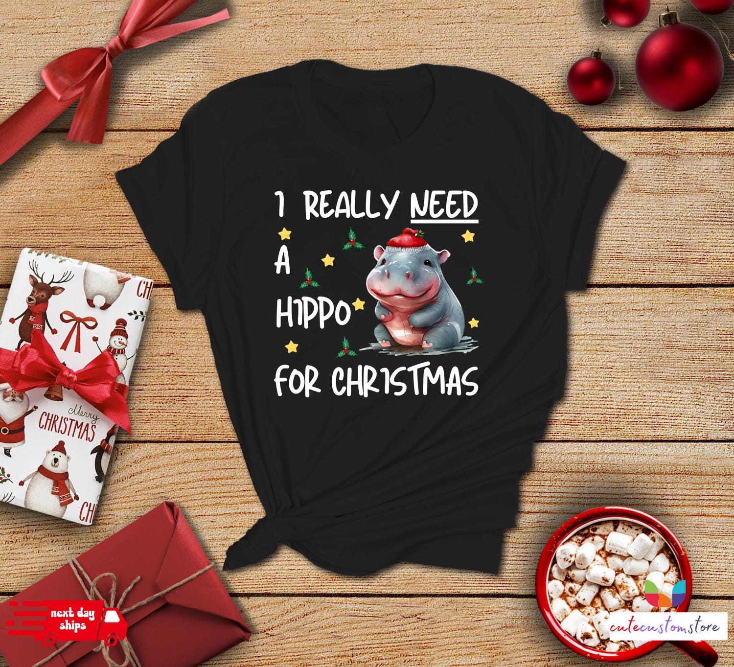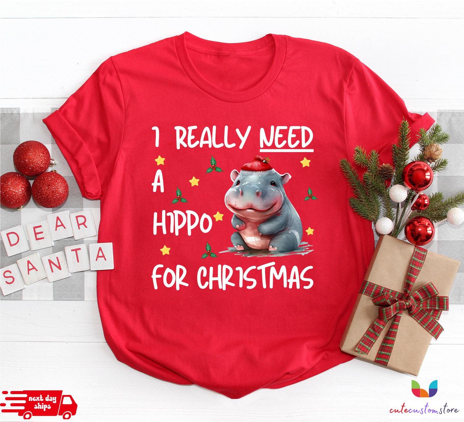 Hippo Christmas Shirt - I Really Need a Hippo for Christmas - Cute Gift for Hippo Lovers