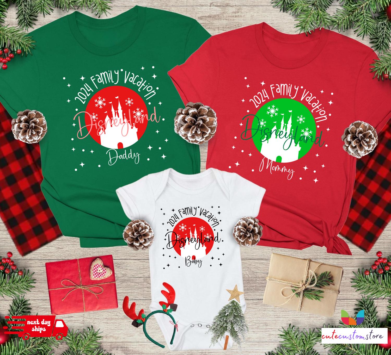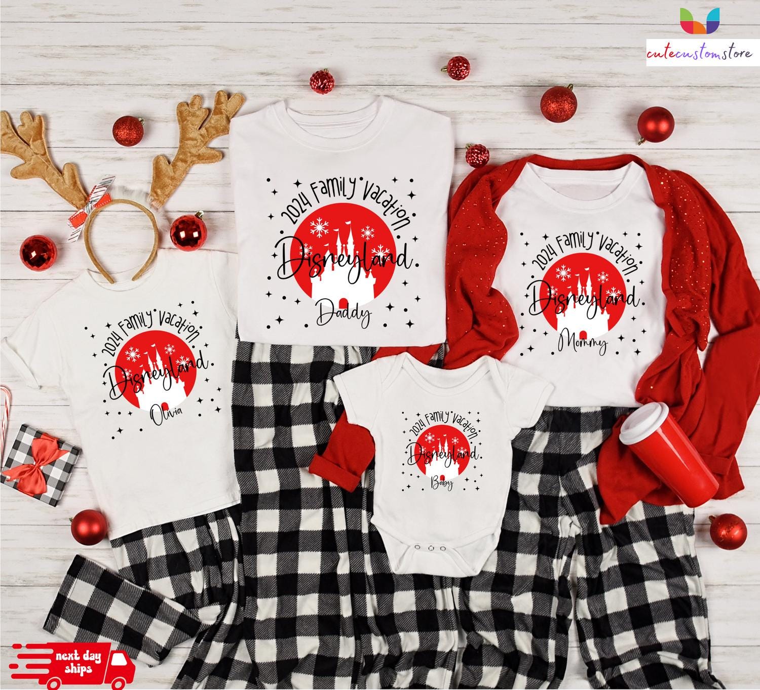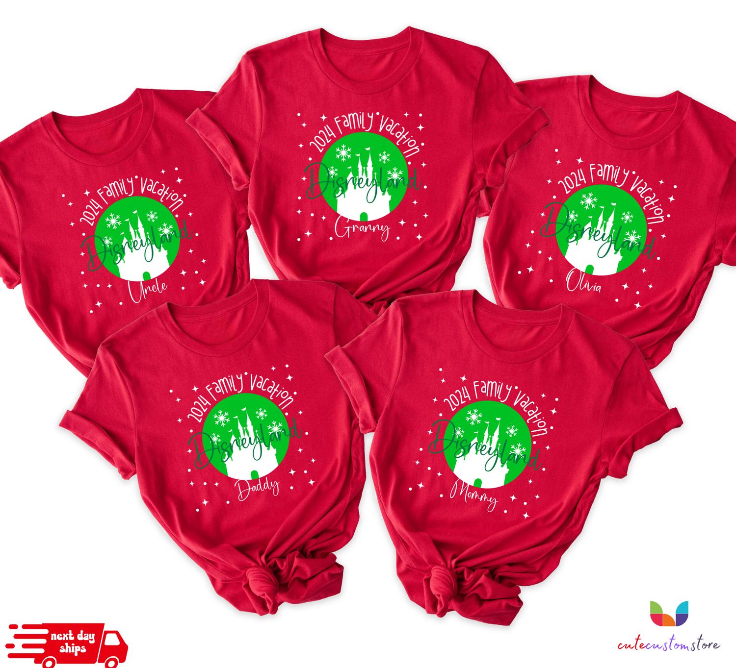 2024 Family Vacation Disneyland Custom Name Christmas Matching T-Shirt