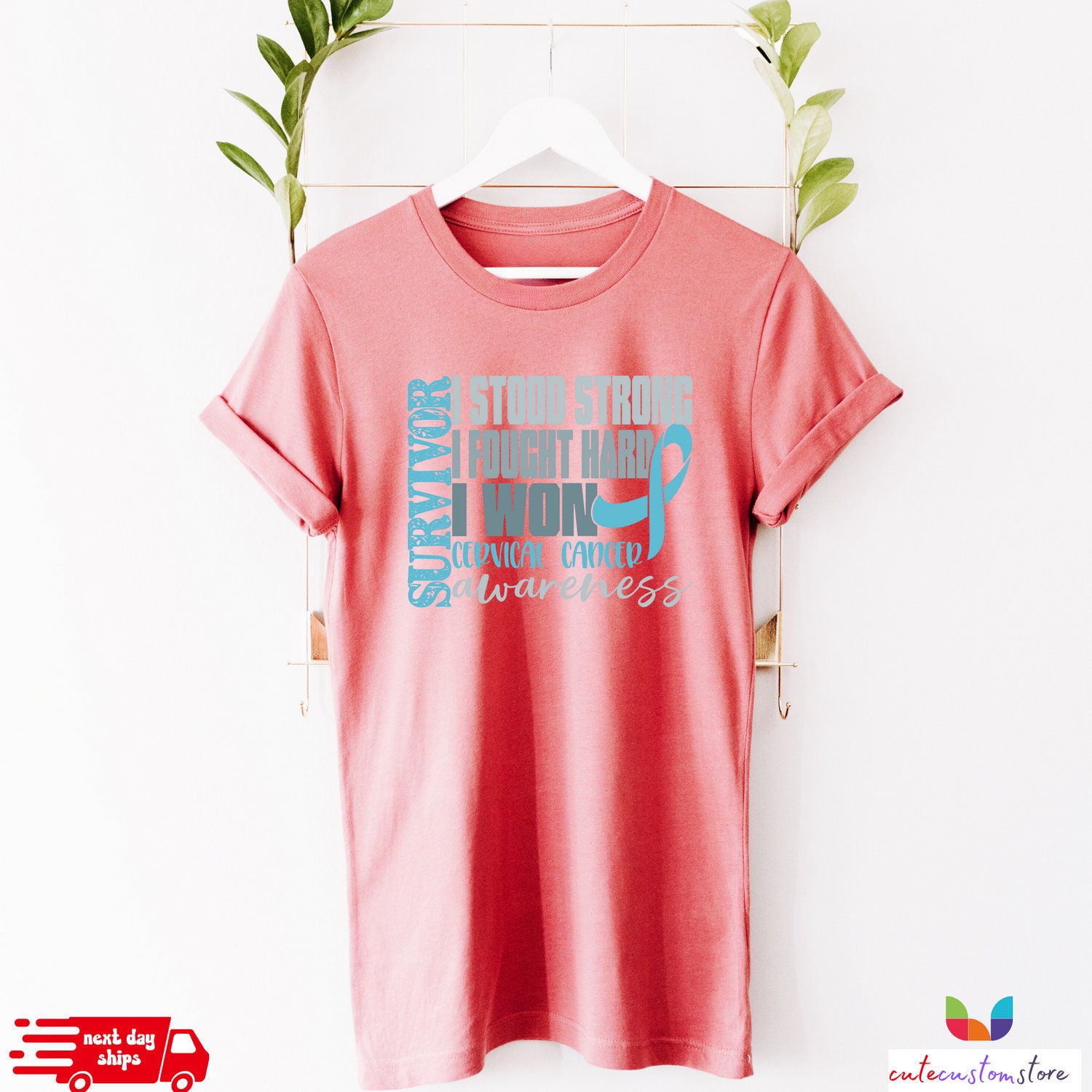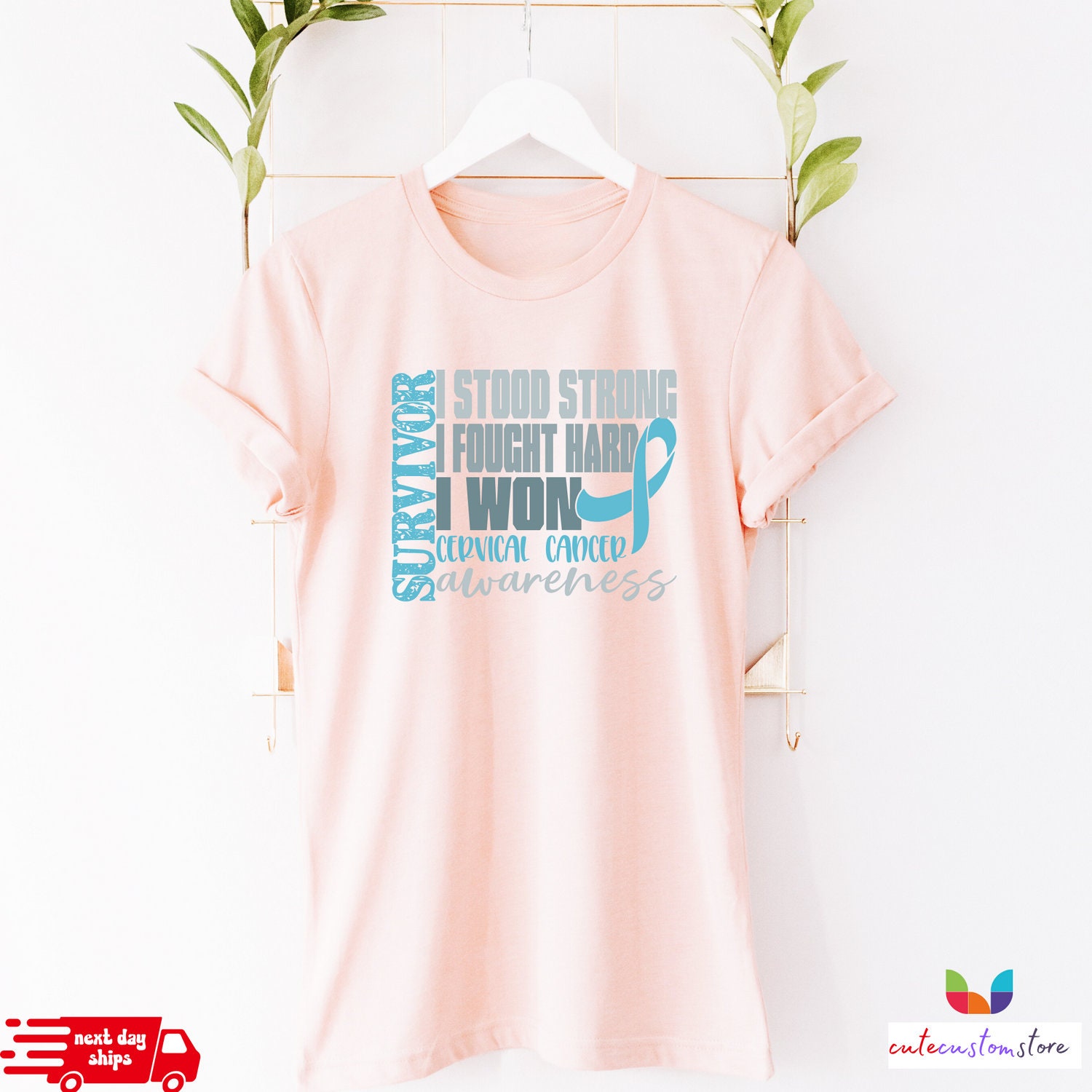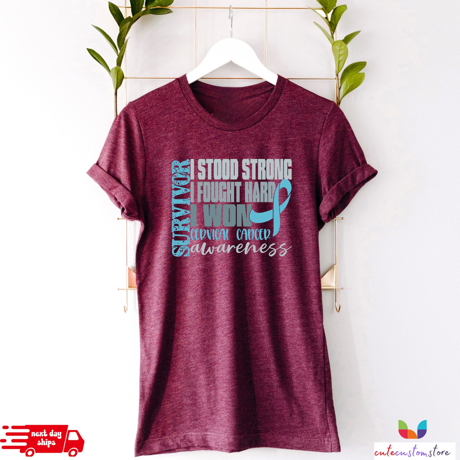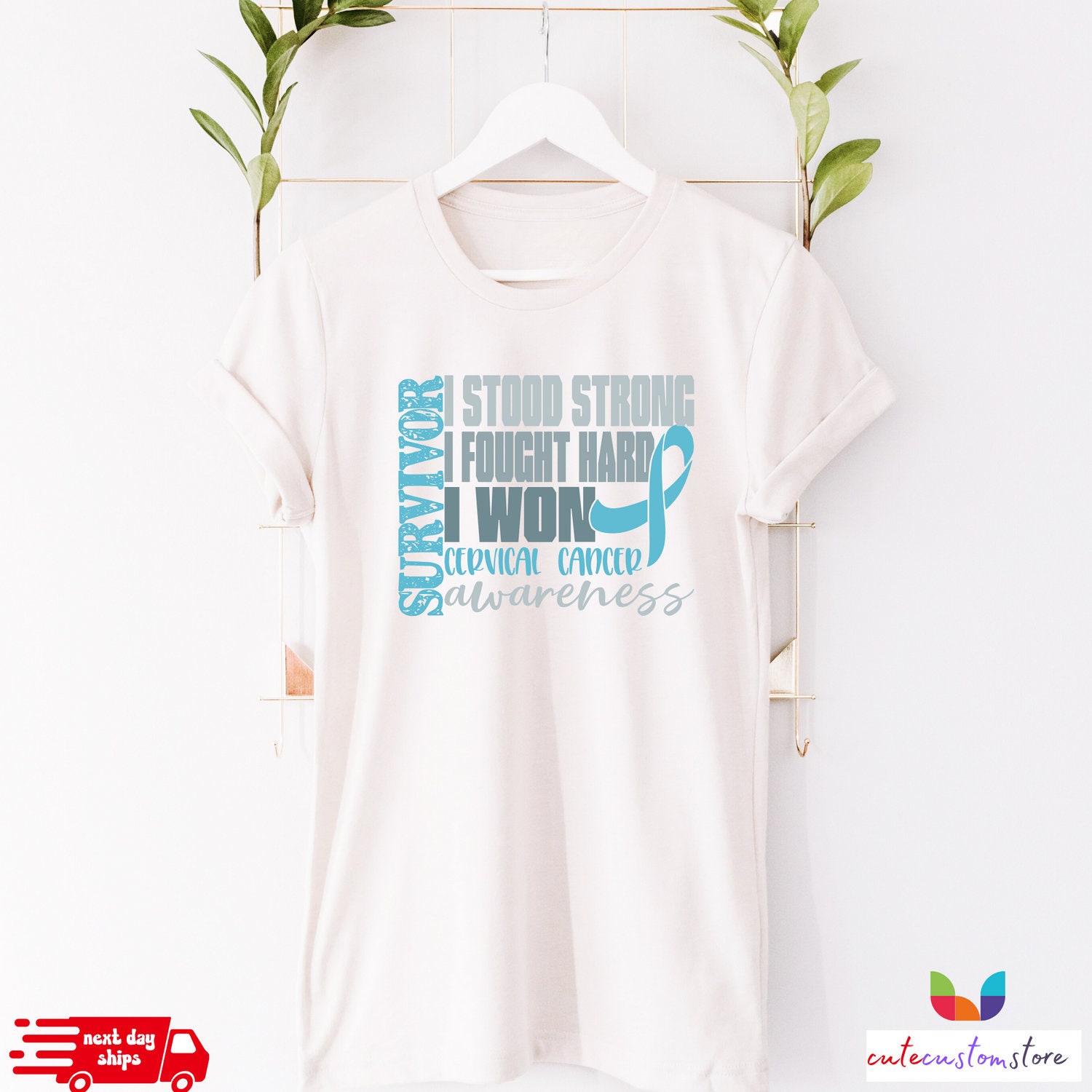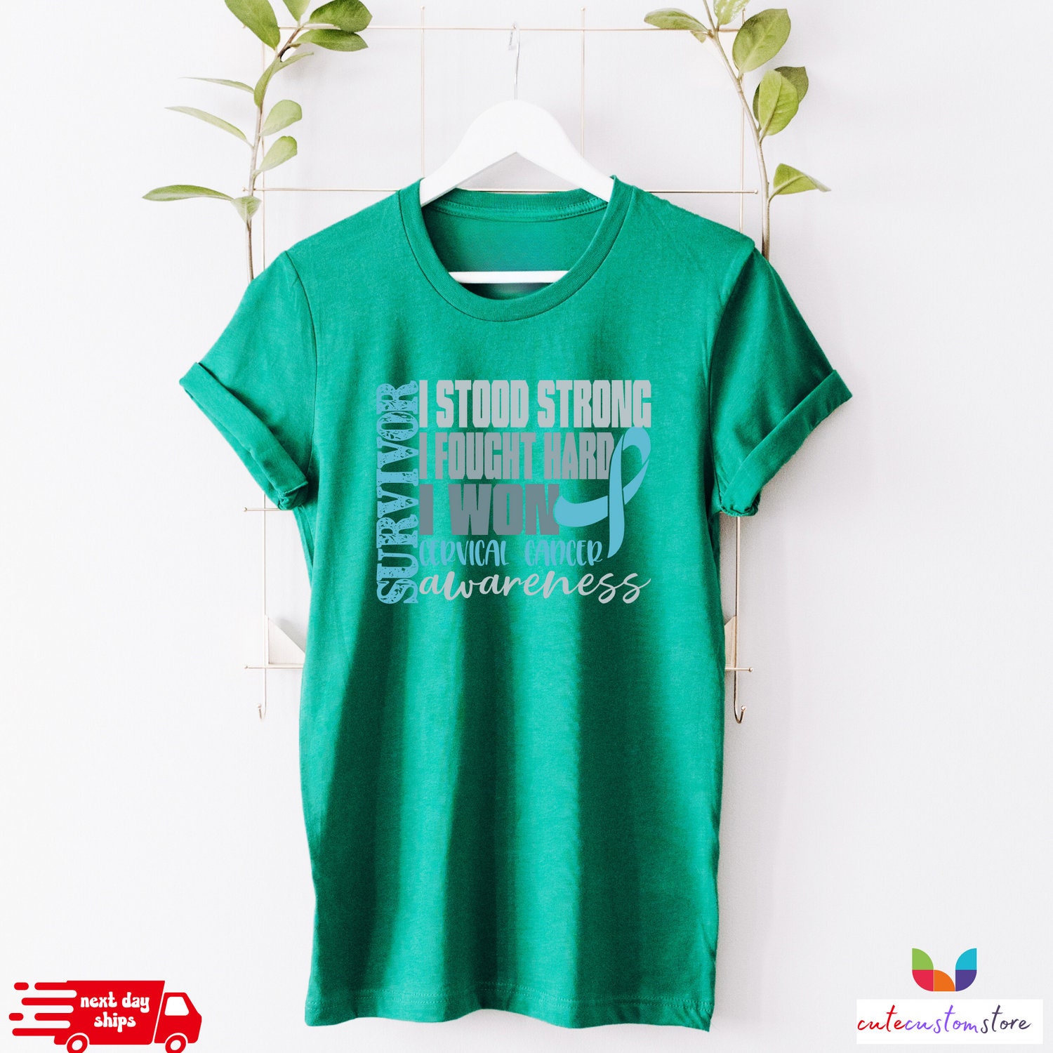 Cancer Survivor Shirt, Cervical Cancer Awareness T-shirt, Teal Ribbon Motivational Tee