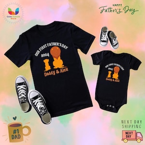 Custom Our First Fathers Day Matching Shirts, Dad and Son Matching Outfits, Father T-Shirt and Baby Bodysuit, Fathers Day Gifts